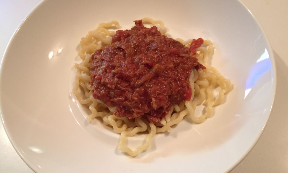 Kook ondertussen de pasta. Het lekkerst bij deze ragù is trofie of orecchiette, maar gelukkig smaakt het sausje bij alle pastas.