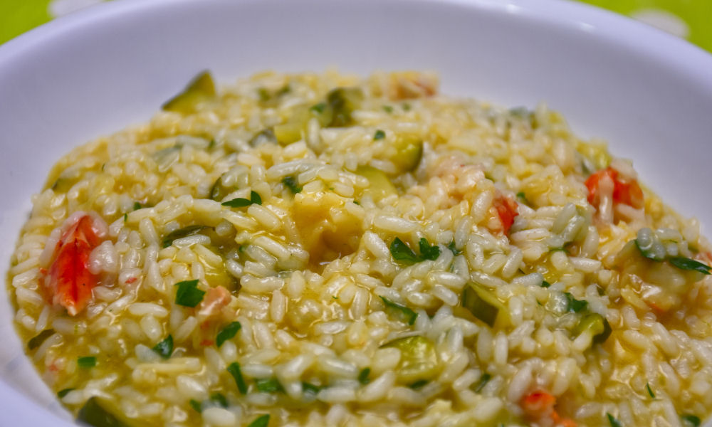 Gordijnen dicht doen, kachel op hoog en je zomerblousje aantrekken en net doen alsof er buiten een hittegolf is. En dan deze risotto maken.